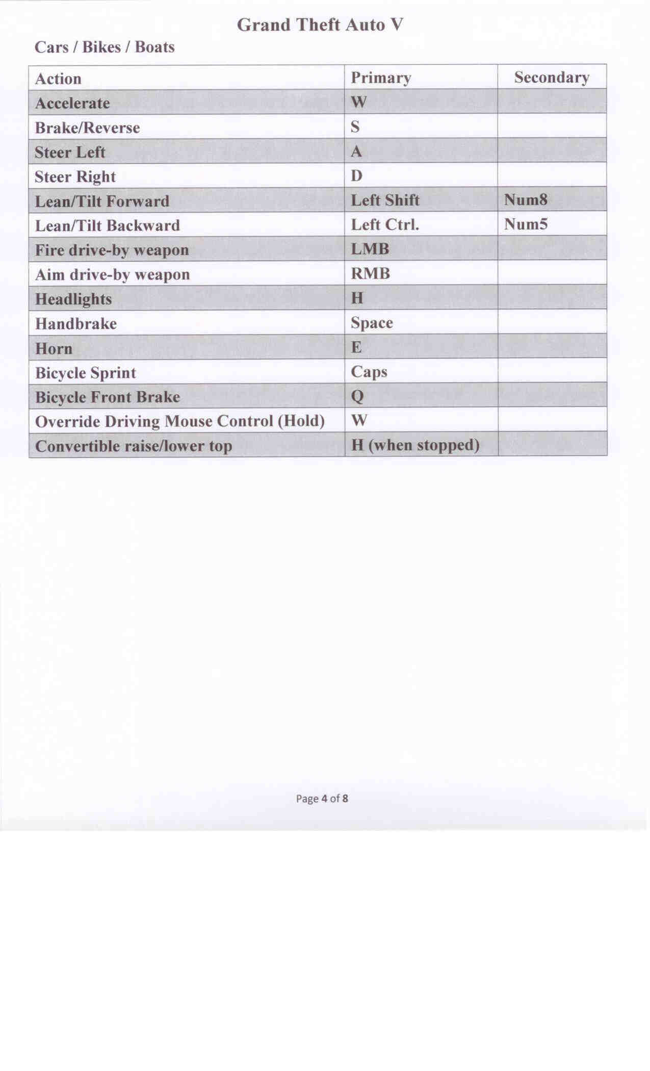 Gta 5 Pc Controls Printable Version